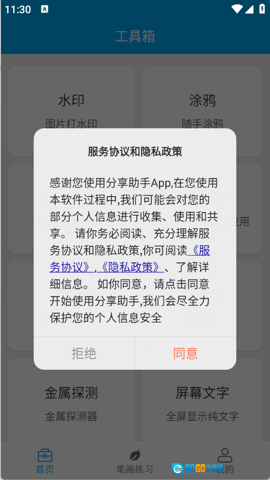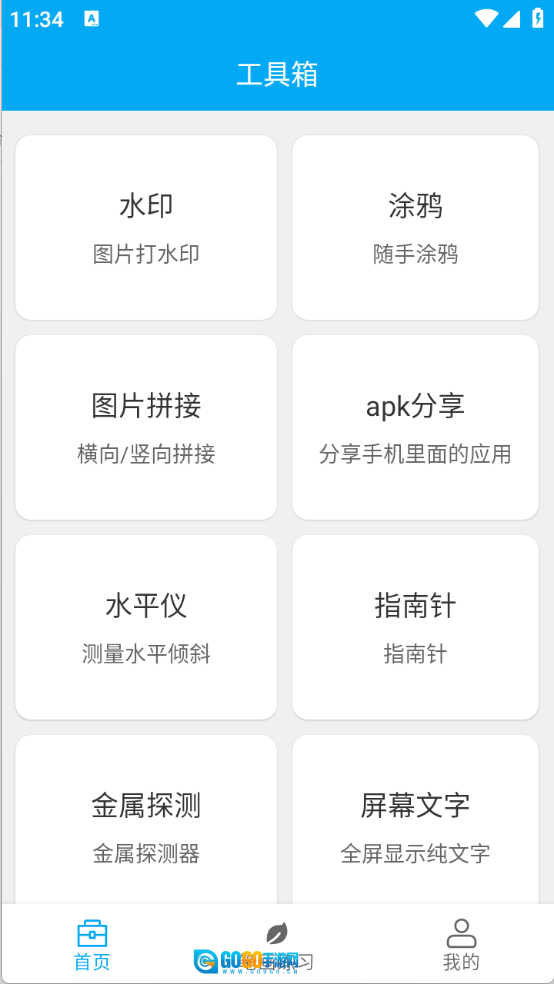 首页页面上提供了不少可使用的工具,像水印、水平仪和指南针之类的都包含在内。
