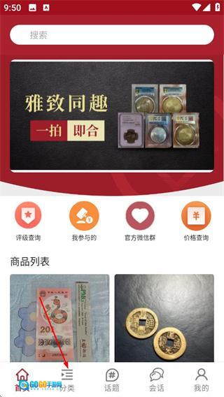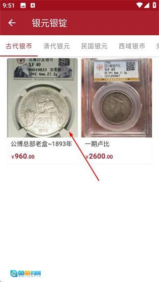 2、在分类页面,点击古代银币选项,可进入对应商品列表页面。