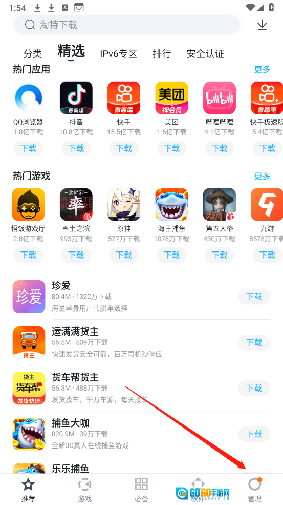 1、进入软件,点击》管理“。