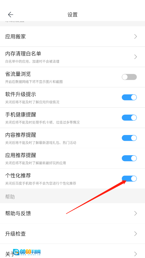3、在弹出的列表里滑动页面,找到“个性化推荐”选项并将其关闭就完成了。