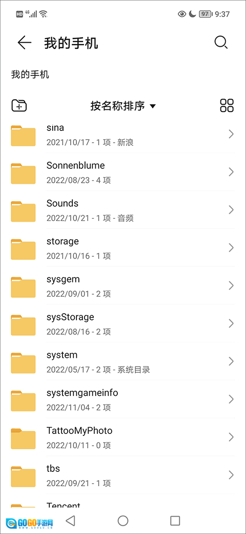 4、进入文件管理界面后,点击“我的手机”按钮进入。
