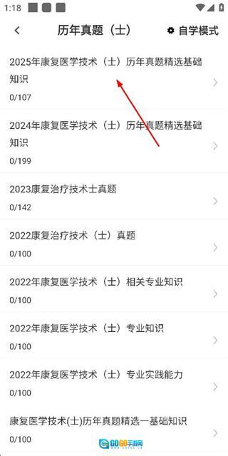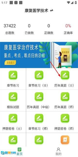1、在康复医学技术首页找到“历年真题”选项并点击,即可进入历年真题页面。