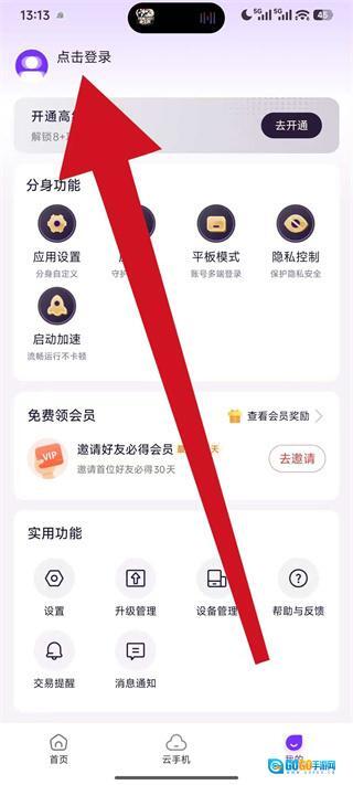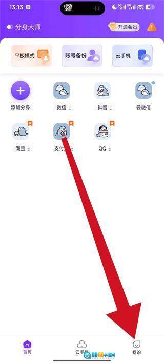 1、打开分身大师,点击底部导航栏的我的,进入个人中心页面。