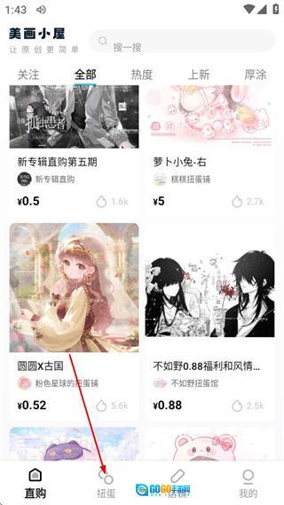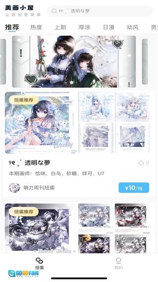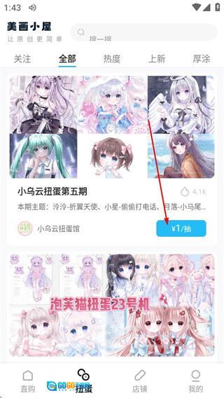 进入美画小屋后,点击底部的扭蛋选项,即可进入扭蛋页面。