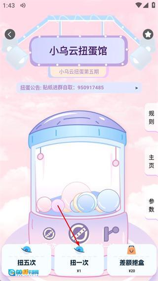 2、在扭蛋页面,点击目标扭蛋对应的“¥1/抽”按钮,就能进入该扭蛋的抽取界面。