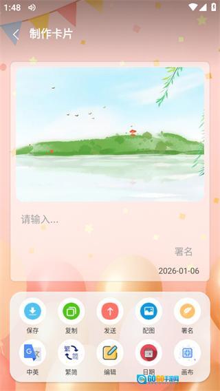 在卡片制作页面,可借助发送功能按钮实现卡片的分享操作。