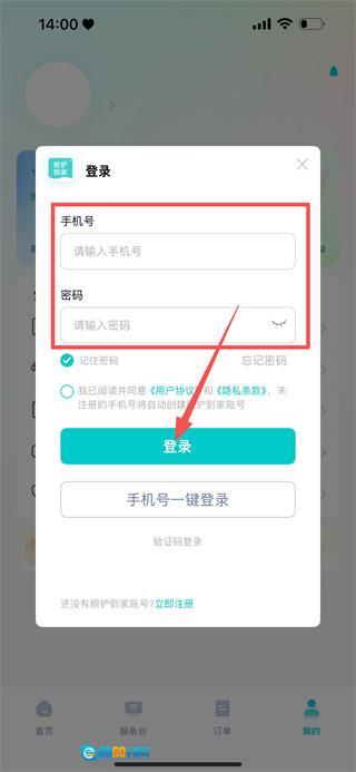 4、在密码登录页面,填写手机号和密码后,点击登录按钮,完成登录操作。