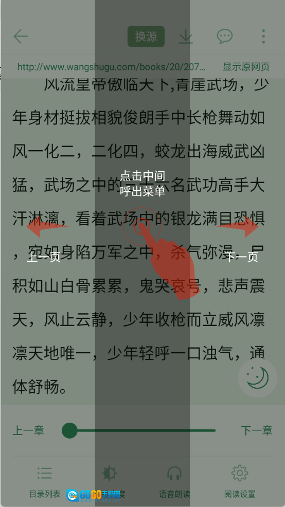 6、左右滑动可以翻页,点击屏幕中间呼出菜单栏。
