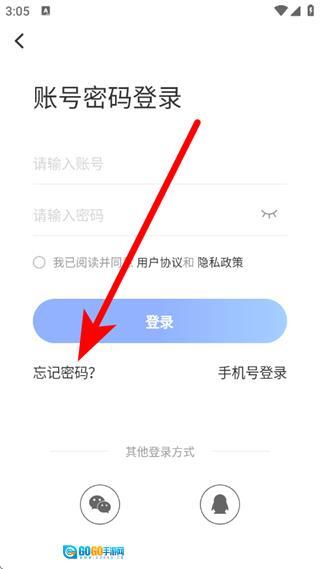 3、在账号密码登录页面,点击忘记密码,进入找回密码页面。