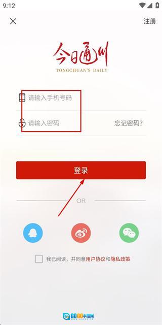 3、在登录页面填写手机号和密码,勾选协议后,点击登录完成账号登录操作。