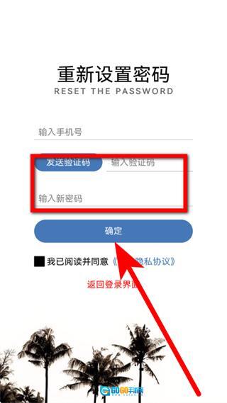 3、输入验证码,设置新密码,点击确定,完成密码重置。