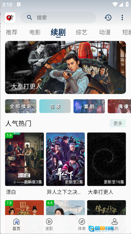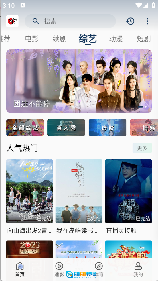 进入首页后,顶部导航栏包含电视剧、电影、综艺等不同类型的内容分类。