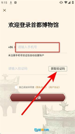 4、把短信验证码输入到验证码框中,勾选相关协议后点击登录按钮,就能完成账号的登录操作。
