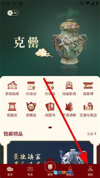 1、首先打开首都博物馆应用,进入首页后,找到底部导航栏中的“我的”选项并点击,随后即可进入个人中心页面。