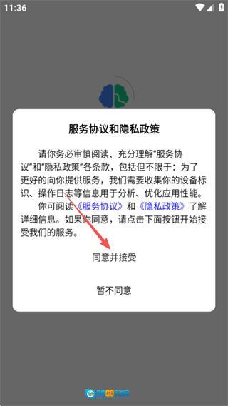 1、打开App后,在协议弹窗中点击同意并接受按钮,可进入登录页面。