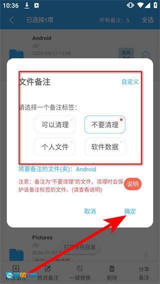 3、在备注文件列表里,选中需要操作的目标文件,点击该文件对应的备注,弹出设置窗口。