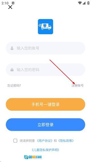 3、在登录页面,点击注册账号选项,进入注册账号页面。