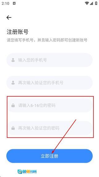 5、最后填写密码和再次确认密码后,点击立即注册,完成注册操作。