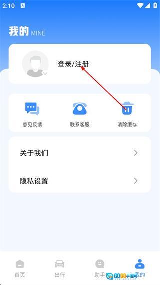 2、随后在个人页面,点击登录/注册选项,进入登录页面。