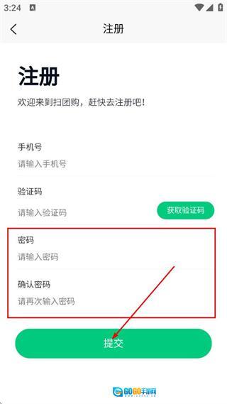 5、最后我们填写密码和确认密码,点击提交按钮,完成注册操作。
