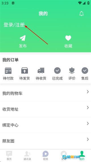 2、在个人页面,点击登录/注册选项,进入登录页面。