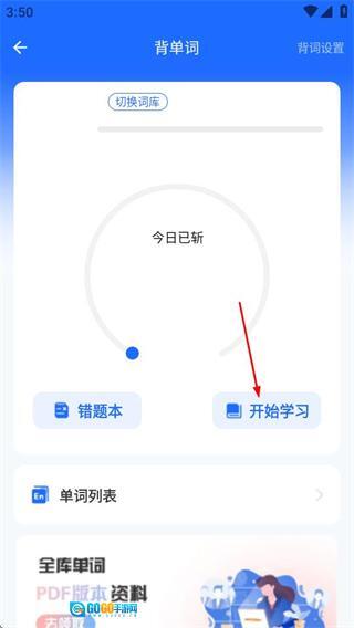 2、在背单词页面,点击开始学习按钮,可进入单词学习环节。