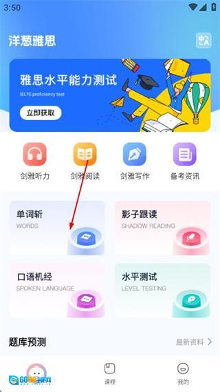 1、进入首页后,点击单词斩选项,可进入背单词页面。