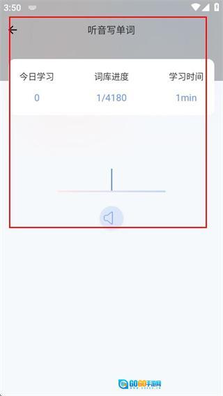 3、在学习页面,可通过听音写单词的形式完成当日单词学习任务。