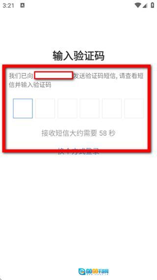 3、进入验证码输入页面后,在对应的输入框中填写验证码,即可完成登录操作。