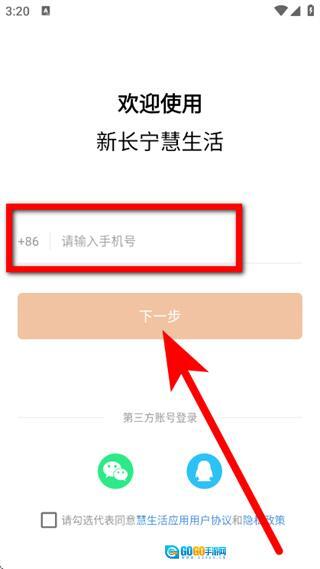 2、在欢迎使用页面,输入手机号,点击下一步。