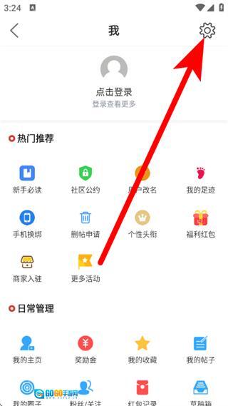 2、在我的页面,点击右上角的设置图标,进入设置页面。