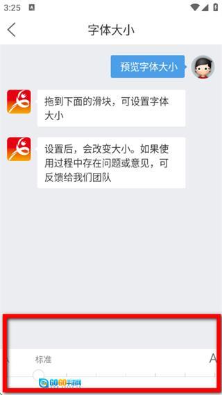4、在字体大小页面,拖动滑块调整到需要的字体大小,完成设置。
