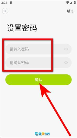 4、在设置密码页面,设置密码,点击确认,完成注册。