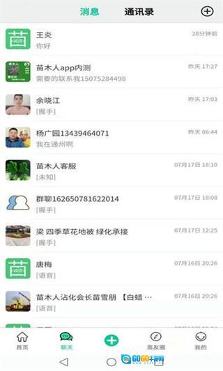 支持添加好友创建群聊,一键群发供需信息,苗友圈分享经营动态,实时通话沟通合作细节,以苗会友拓展人脉资源促进跨区域交易。