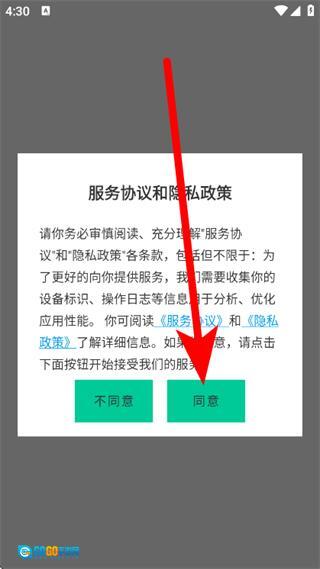 1、在服务协议和隐私政策弹窗页面,点击同意,进入登录页面。