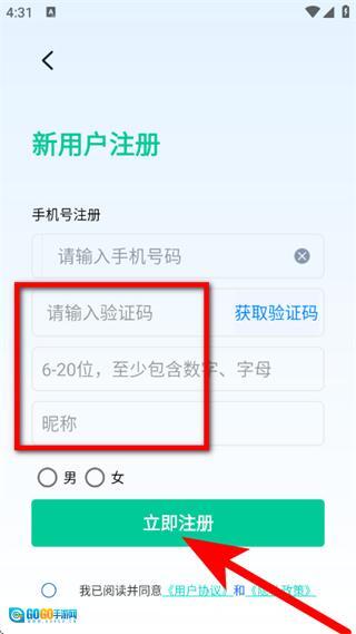 2、在登录页面,点击立即注册选项,进入新用户注册页面。