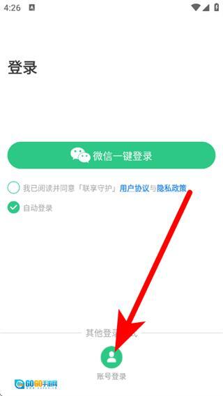 1、打开联享守护登录页面,点击账号登录,进入账号登录界面。