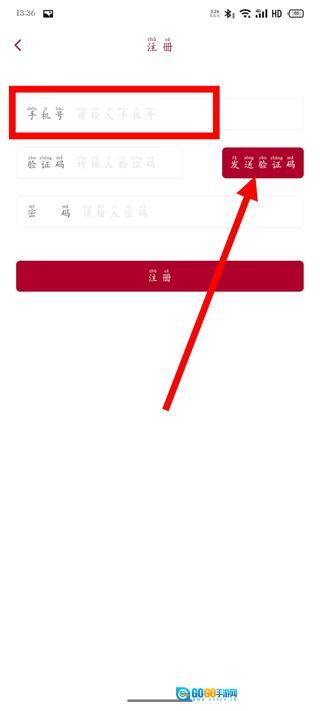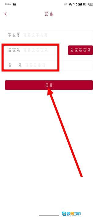 5、在输入框输入验证码,设置密码,点击注册,完成账号注册。