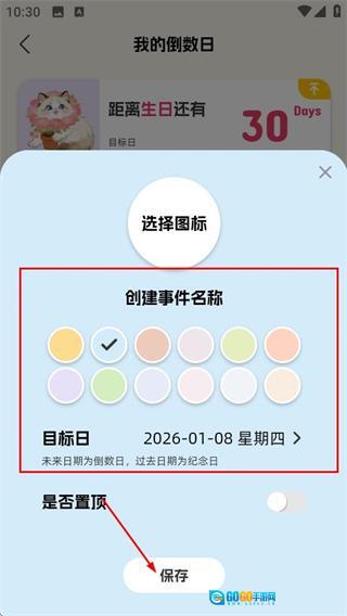 4、在创建事件弹窗中,填写信息后点击保存按钮,即可完成倒数日事件的创建。