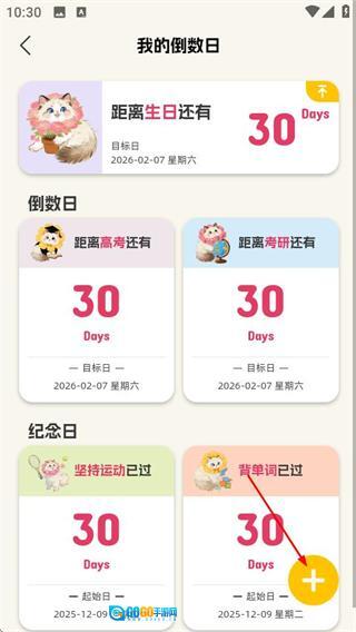 3、在我的倒数日页面,点击右下角的加号按钮,可打开创建事件的弹窗。