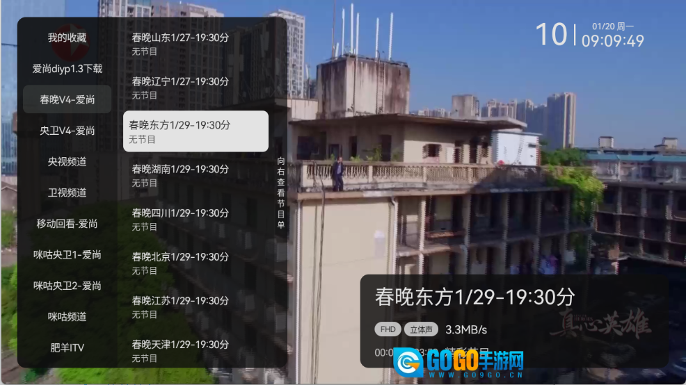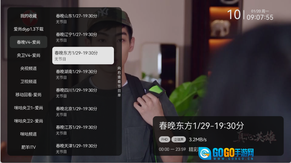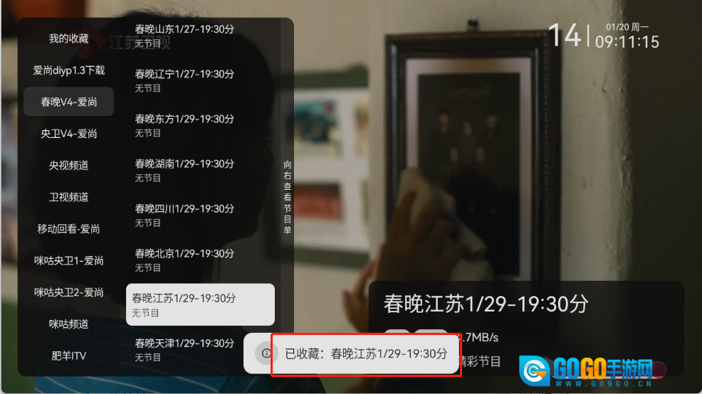 点击屏幕任意位置后,左侧栏目就会显示出众多电视频道。