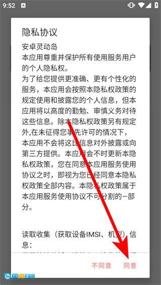 1、打开安卓灵动岛,弹出弹窗后,点击同意,进入安卓灵动岛的主界面。