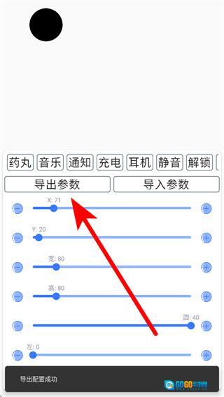 4、参数调整完成后,可通过导出参数保存当前设置,完成安卓灵动岛的个性化设置。