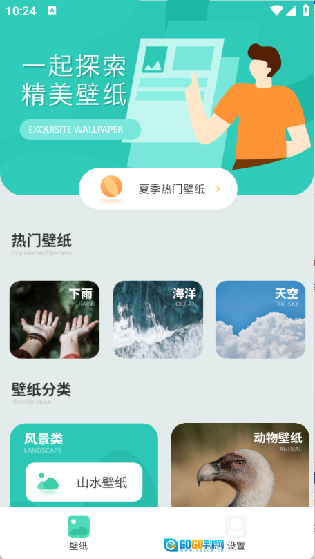 壁纸页面包含多种类型,比如风景类、建筑类和萌宠类。