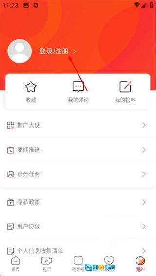 2、在个人中心页面,点击登录注册区域,可进入登录页面。