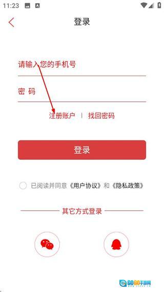 3、在登录页面,点击注册账户选项,可进入注册页面。