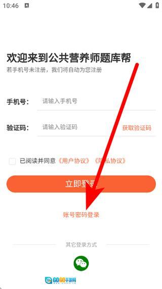 1、在登录页面,点击账号密码登录,进入账号密码登录界面。