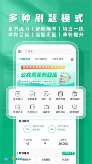 设有高频考点、易错题目等专项模块,针对膳食调查、社区营养管理等核心技能提供专题练习,搭配知识点自测功能,帮助系统化巩固重点内容。