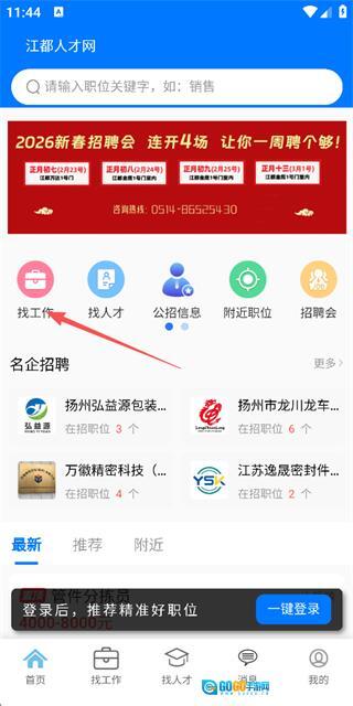 1、在江都人才网首页点击找工作选项,进入职位列表页面。