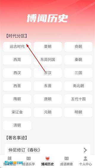 2、在博闻历史页面,选择目标时代,可进入该时代的内容列表页面。